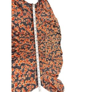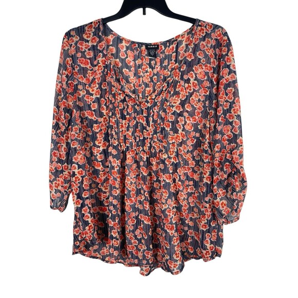 Torrid 3 Floral Blouse Navy Red Orange Print Pleated Boho Peasant Top Sheer 3X