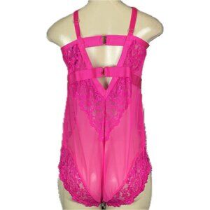 Torrid +3 Pink Sheer Mesh Lace Caged Neckline & Back Adjustable Strap Bodysuit