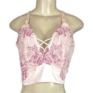 ITEM: Torrid +3 Pink Unlined Fuchsia Floral Mesh Lace Caged V-Neck Longline Bralette