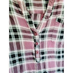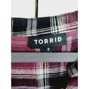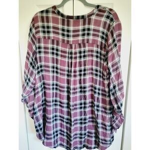 Torrid 3 Purple Black Plaid Henley Shirt Pullover Long Sleeve Hi-Lo Soft Pocket