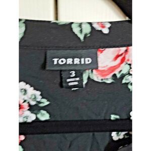 Torrid 3 Top Black Pink Green Floral Button Front Long Sleeve Blouse 3X 24/26
