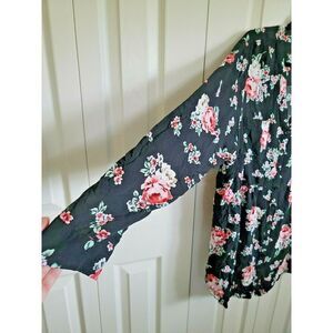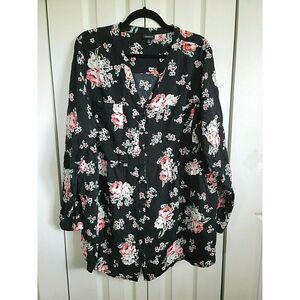 Torrid 2 Black Pink Green Floral Button Front Long Sleeve Babydoll Blouse 2X. 2 Front Pockets on Chest. Condition is "Pre-owned".