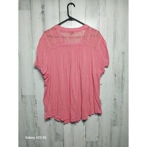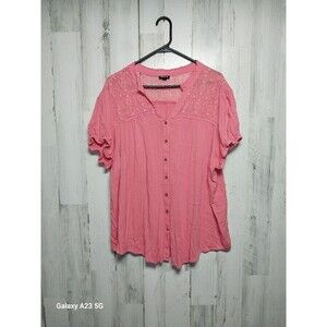 Torrid 3X Peach Short Sleeve Button-Up Shirt lightweight lace
