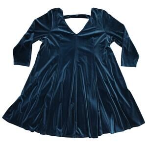 Torrid 3X Teal Velvet Dress V-Neck Cutout Back 3/4 Sleeve