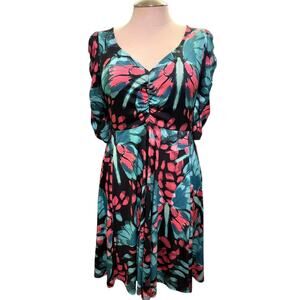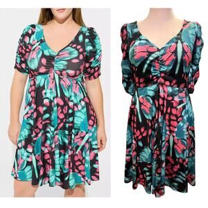 Torrid 4 (4X) Black Floral Butterfly Print Studio Knit Cinch Front Skater Dress