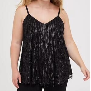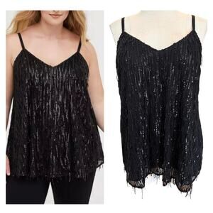 Torrid 4 (4X) Sexy Sophie Black Sequin Fringe Swing Party V-Neck Cami Tank Top