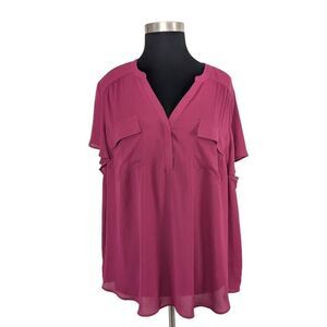 Torrid 4 4X Harper Georgette Pullover Berry Short Flutter Sleeve Top NWT