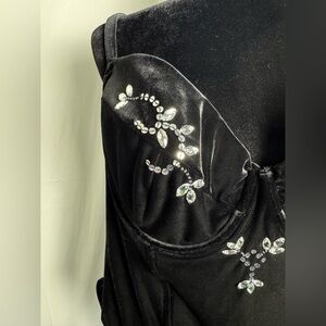 Torrid 4 Black Velvet Gem Sequin Underwire Corset Bustier