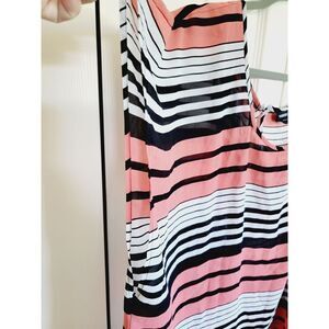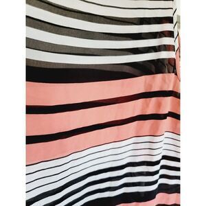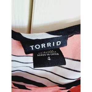 Torrid 4 Blouse Plus 4X Striped Chiffon Pink Black White Back Button Scoop Neck