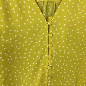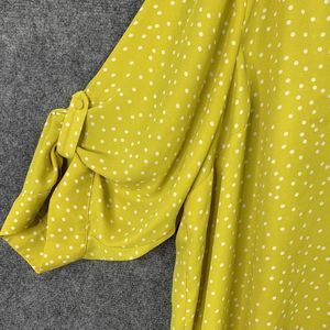 Torrid 4 Button Up Blouse Chartreuse Yellow W/ Polka Dots Covered Buttons 3/4 Sl