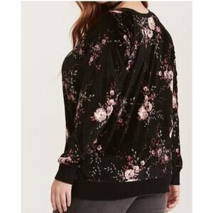 Torrid 4, Women 4x, Black Floral-- Round Neck, Long Sleeves, Velvet Fabric Material, Lightweight Sweatshirt