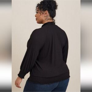Torrid NWT Textured Jersey Choker Neck Smocked Bottom Top Black Size 3 Plus / 3X