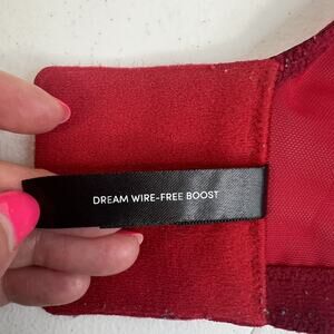 Torrid 46DDD Bra Dream Wire Free Boost Push Up Padded Rhinestone Red Lace