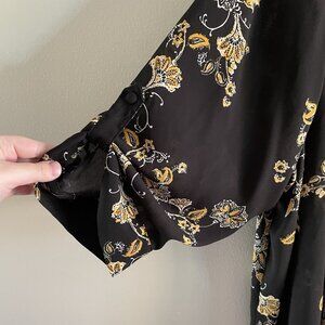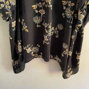 Torrid 4X Black Yellow Floral Roll Tab Sleeves Shark Bite Hem Keyhole Tunic Top