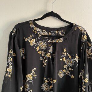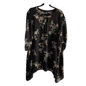 Torrid Women 4X Black Yellow Floral Roll Tab Sleeves Shark Bite Hem Keyhole Tunic Top.