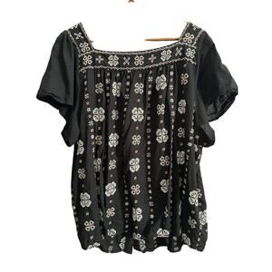 Torrid 4X Boho Black Embroidered Peasant Blouse | Rayon Linen Blend Festival