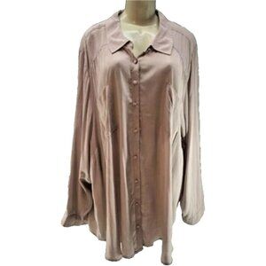 Torrid +5 Beige Rose Crepe Faille Button Down Collar Pockets Long Sleeve Shirt