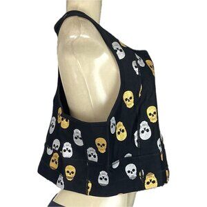 ITEM: Torrid +5 Black Glitter Gold-Silver Skulls Racerback 4 Way Stretch Longline Sports Bra