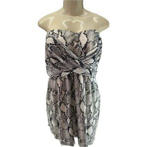 ITEM: Torrid +5 Gray-Cream Animal Snake Print Twisted Draped Front Lined Smocked Back Strapless Blouse
