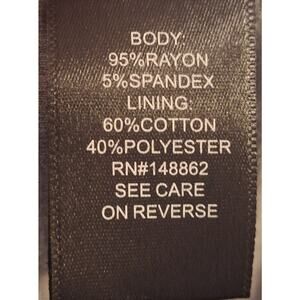 Materials: Body: 95% Rayon; 5% Spandex// Lining: 60% Cotton; 40% Polyester