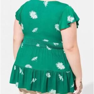 Torrid 5X 5 Green Floral Super Soft Tie Front Keyhole Babydoll Top