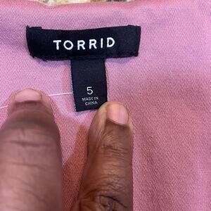 Torrid 5x Pink Stretch Twill Peplum Military Buttons Open Front Jacket