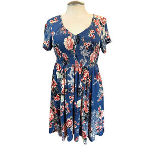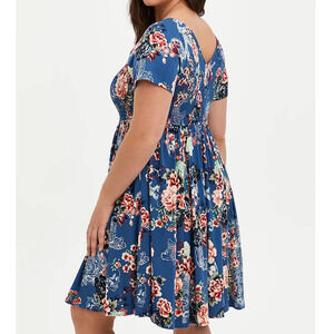 Torrid 6 (6X 30) Blue Tiger Dragon Skull Koi Tattoo Smocked Mini Floral Dress