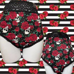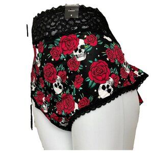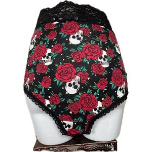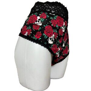 ITEM: Torrid +6 Red Rose Skull Black Scallop Lace Waistband Mid-Rise Cheeky Panties