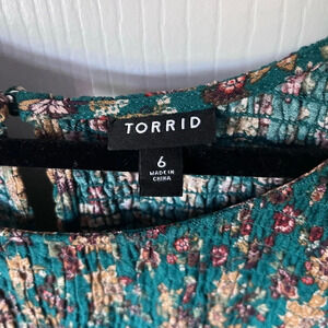Torrid 6 green Crinkle Gauze Smocked blouse top
