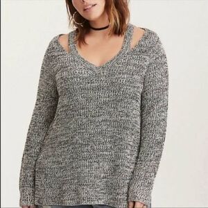 torrid marled knit split neck tunic sweater preowned great condition size 3X 22/24 torrid 3 white, gray and black knit tpptoteK