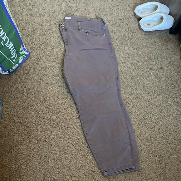 Denim brown jetting, high rise, three button front with tummy smoothing