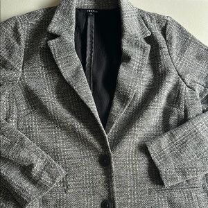 Stylish gray textured blazer with a classic design. Perfect for formal or casual wear.