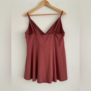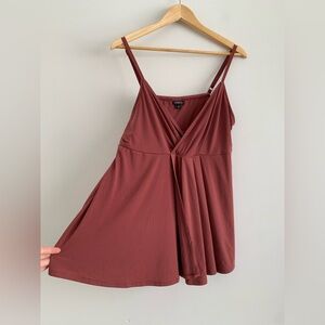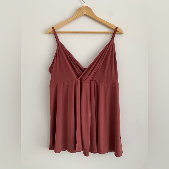 Torrid ! Flowy mauve colored tank top with adjustable straps and a faux fold wrap
