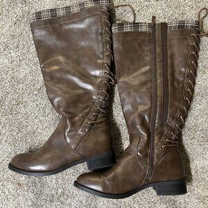 Torrid 9W Wide Calf Wide Width Brown Faux Leather Knee Boots NWOT