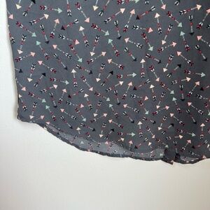 Torrid Abbey Arrow Georgette Button Back Blouse Gray with Arrow All Over Print Round Neck Short Sleeves Chest Patch Pocket Button Back Closure Curved Hem Lightweight Semi Sheer