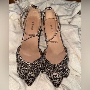 Stylish animal print heels with elegant bow detail. Adjustable ankle strap for comfort. Perfect for a bold fashion statement.