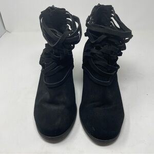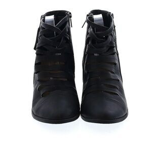 Torrid Ankle Booties Strappy detail Stacked 3” Heels Side Zip Black sz 10