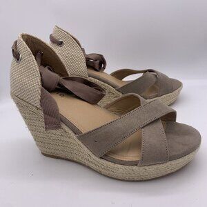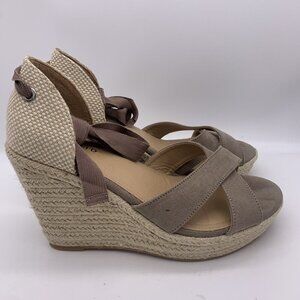 Torrid Ankle Wrap Platform Wedge Espadrilles Size 9WW Taupe Tan Brown New