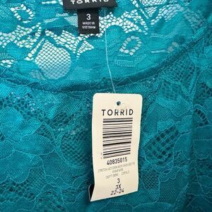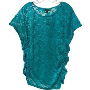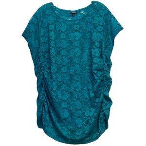 Torrid Aqua Blue/Green Stretch Lace Crew Neck Cinch Side Tee Size 3 3XL NWT