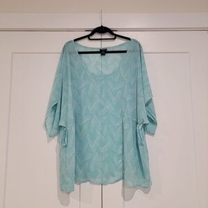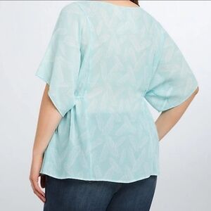Torrid Aqua Turquoise Feather Print Side Cinch Tie Semi Sheer Chiffon Top
