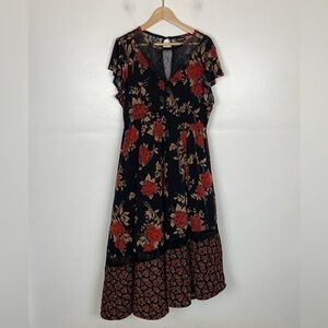 Torrid Asymmetrical Floral Lace Dress 2X Black Red Soft Knit Stretch Cottagecore
