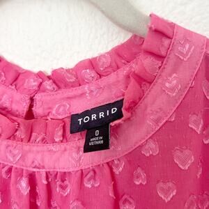 Torrid Size 0X Azalea Pink Heart Clip Dot Print Mock Neck Sleeveless Blouse