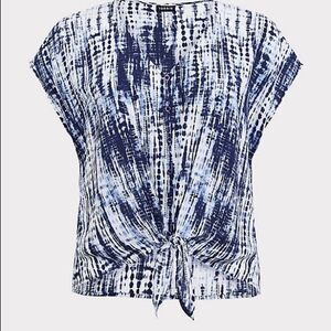 Torrid BLUE TIE-DYE CHALLIS TIE FRONT DOLMAN Cropped TOP Blouse coastal L/0