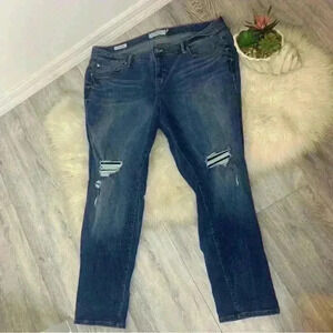 Cuffed, lace, edged, modest, distressed, stretchy, slimming, comfortable, boyfriend, girlfriend, medium wash, curvy, plus size