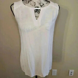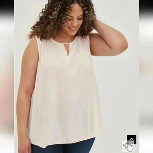 This beautiful baby pink sleeveless blouse from Torrid features a metal detail key hole neck and a lightweight airy fabric that doesn't cling. In excellent pre-owned condition, this blouse is a Torrid size 00, which is the equivalent to a size 10 anywhere else.