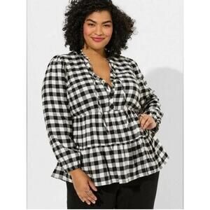 Torrid. Babydoll Brushed Flannel Ruffle Collar Top - Great condition, see all pictures! Measurements Laying Flat!!