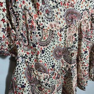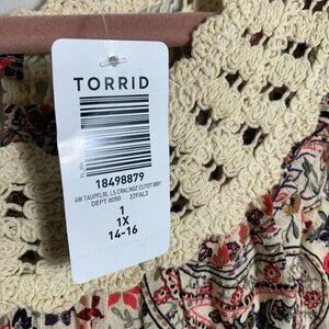 Torrid Babydoll Clip Dot Crinkle Gauze Crochet Neck Top Size 14 Boho Paisley NWT