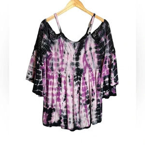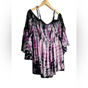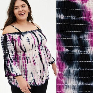 Torrid | Babydoll Cold Shoulder Top Smocked Bell Sleeves Rayon