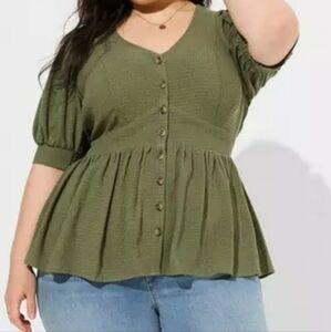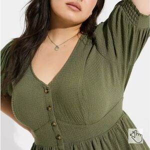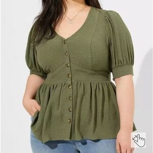 Torrid Babydoll Crinkle Flannel Gauze Button Up Short Sleeve Top Size 2