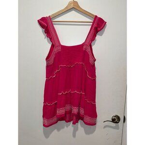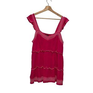 Torrid Babydoll Crinkle Gauze Womens 1x Hot Pink Boho Embroidered top